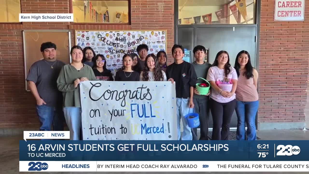 ARVIN, Calif. (KERO) — Sixteen students from Arvin High School received a surprise this week when they found out they are getting full scholarships to the University of California, Merced.