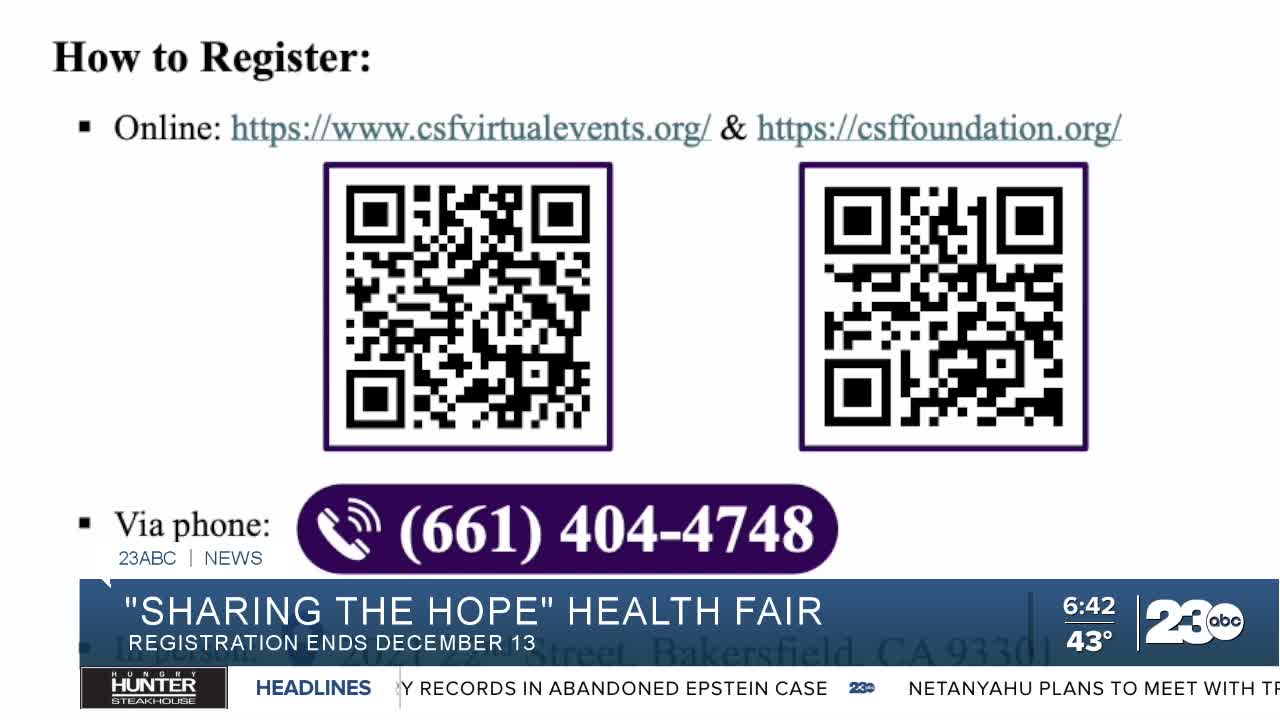 BAKERSFIELD, Calif. (KERO) — The CSF Medical Nonprofit Foundation is hosting its 7th annual Sharing the Hope Community Wellness Virtual Health Fair, with registration open through the end of this week. The virtual format allows participants to access free medical screenings and services at their convenience.