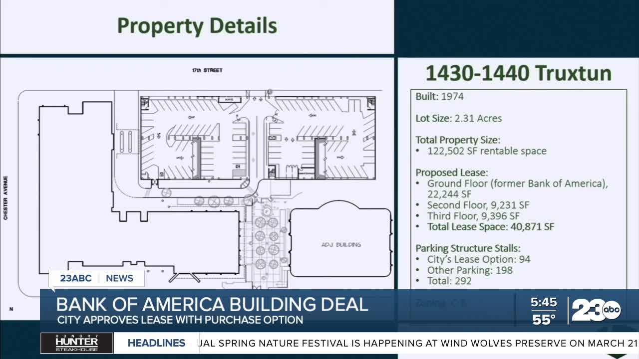 BAKERSFIELD, Calif. (KERO) — The Bakersfield City Council voted Wednesday to approve a lease agreement with an option to purchase the Bank of America building in downtown Bakersfield.