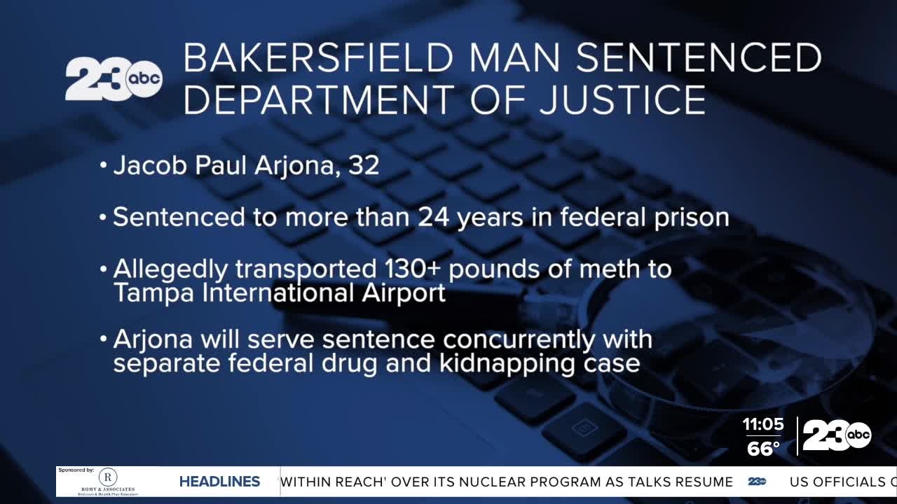 BAKERSFIELD, Calif. (KERO) — A Bakersfield man has been sentenced to more than 24 years in federal prison for transporting more than 130 pounds of methamphetamine to Tampa International Airport.