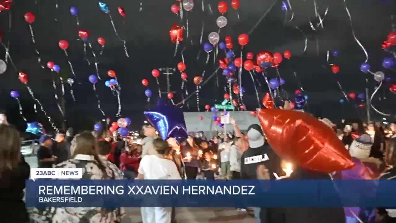 BAKERSFIELD, Calif. (KERO) — Community members came together Sunday to release balloons in honor of 8-year-old Xxavien Hernandez, who died after being struck by a suspected drunk driver while eating lunch with his father.