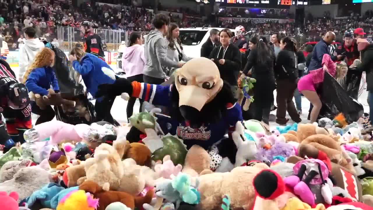 BAKERSFIELD, Calif. (KERO) — The Bakersfield Condors are hosting their annual Teddy Bear Toss game on Saturday, where thousands of fans will participate in a tradition that has grown into one of the community's most impactful charitable events.