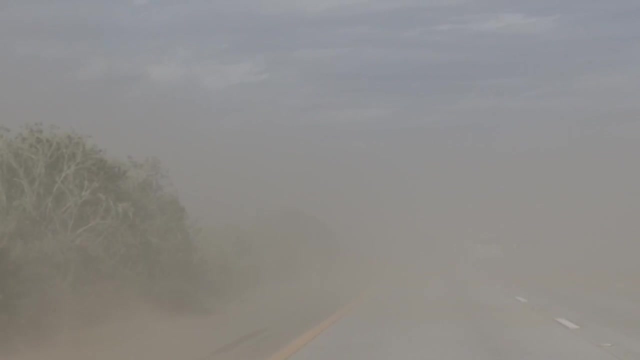 The dust clouds formed when powerful winds picked up loose dirt from fields alongside the highway, creating visibility issues that caught drivers off guard.