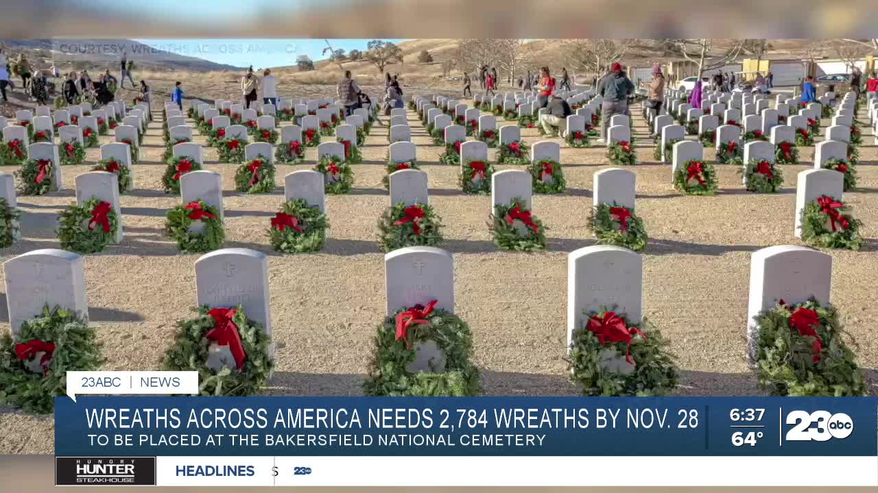 BAKERSFIELD, Calif. (KERO) — Penny Martinez is on a mission, and time is running out! The Air Force veteran is leading a charge to collect the final 1,000+ wreaths for this year's patriotic display in December. Wreaths Across America places the ornament at every headstone in participating cemeteries. The holiday decoration reminds family and friends that their sacrifice has not been forgotten, especially during the holidays. You have until November 28th to join in the effort.