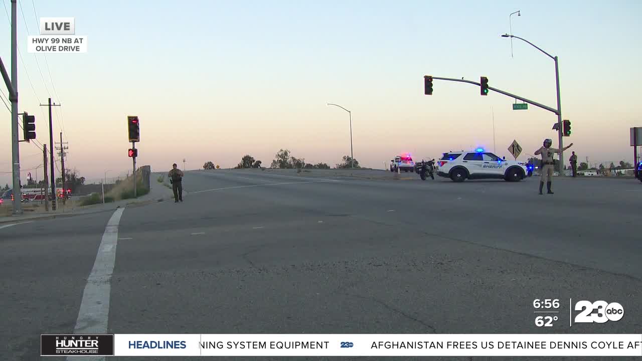 ORIGINAL STORY: All northbound lanes of Highway 99 are closed as authorities respond to a person on the Olive Drive overpass.
