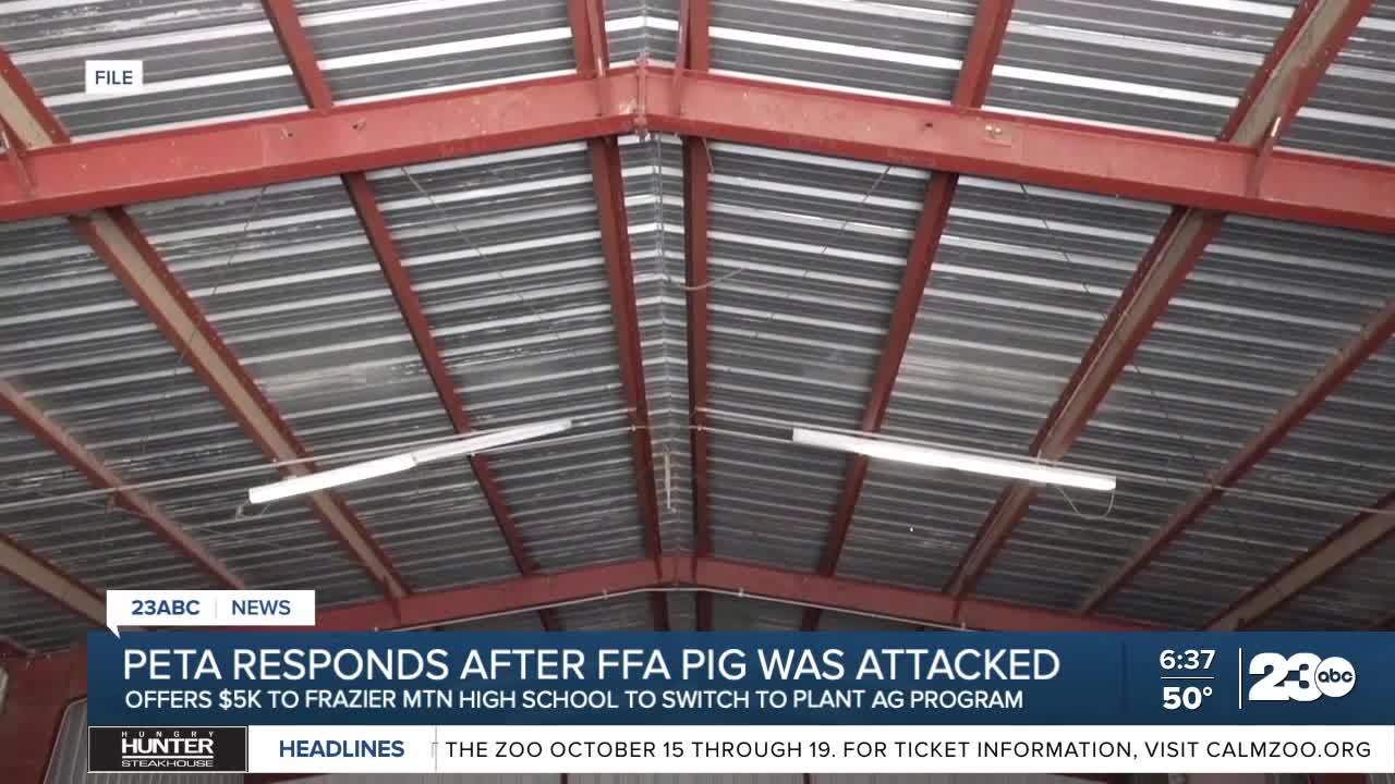FRAZIER PARK, Calif. (KERO) — PETA's TeachKind program has offered $5,000 to help Frazier Mountain High School transition to a fully plant-based agriculture program following the death of an FFA student's pig that was stabbed and later euthanized before the Kern County Fair in September.