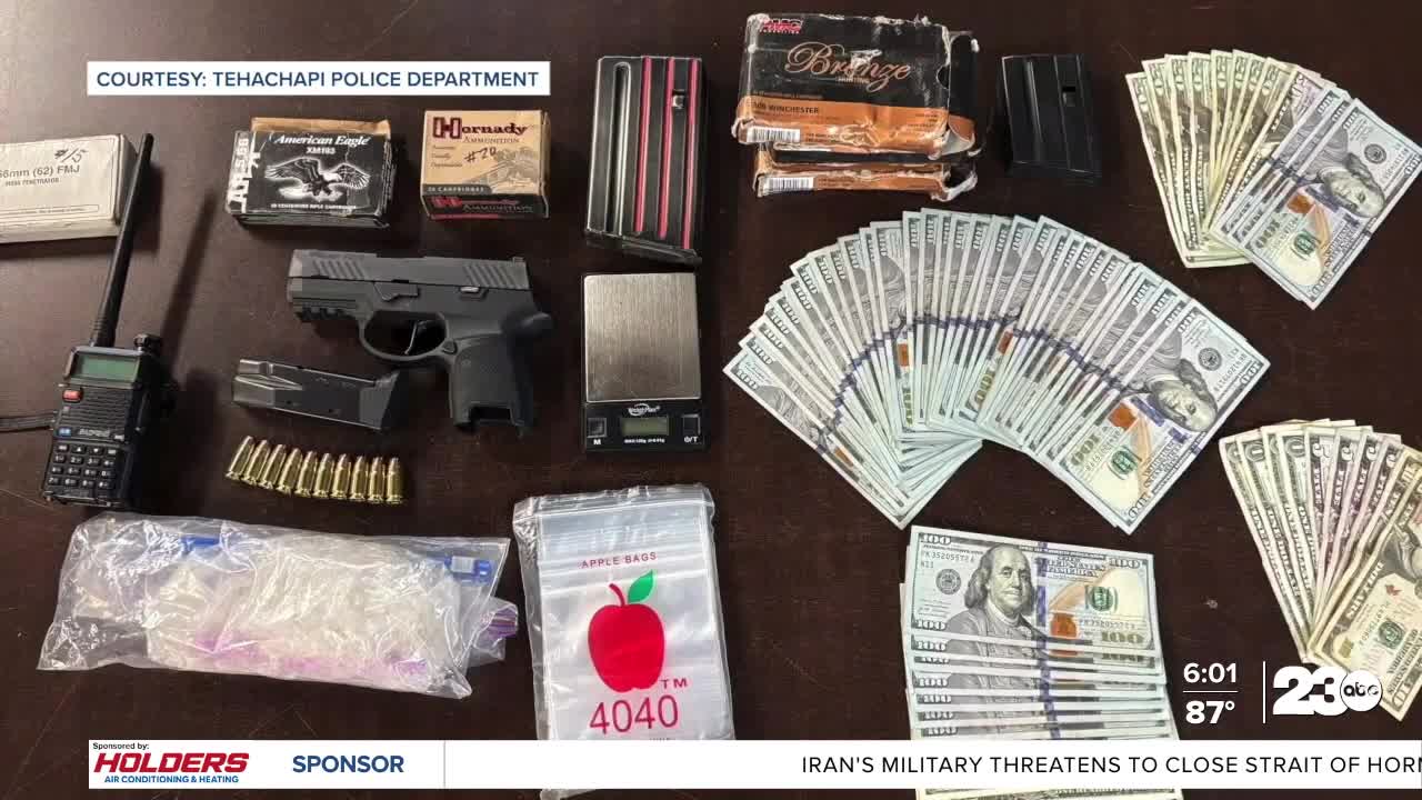 TEHACHAPI, Calif. (KERO) — Tehachapi police arrested two 30-year-old residents on Sunday after finding a loaded gun, cash, and about half a pound of methamphetamine during a search of a Golden Hills home.