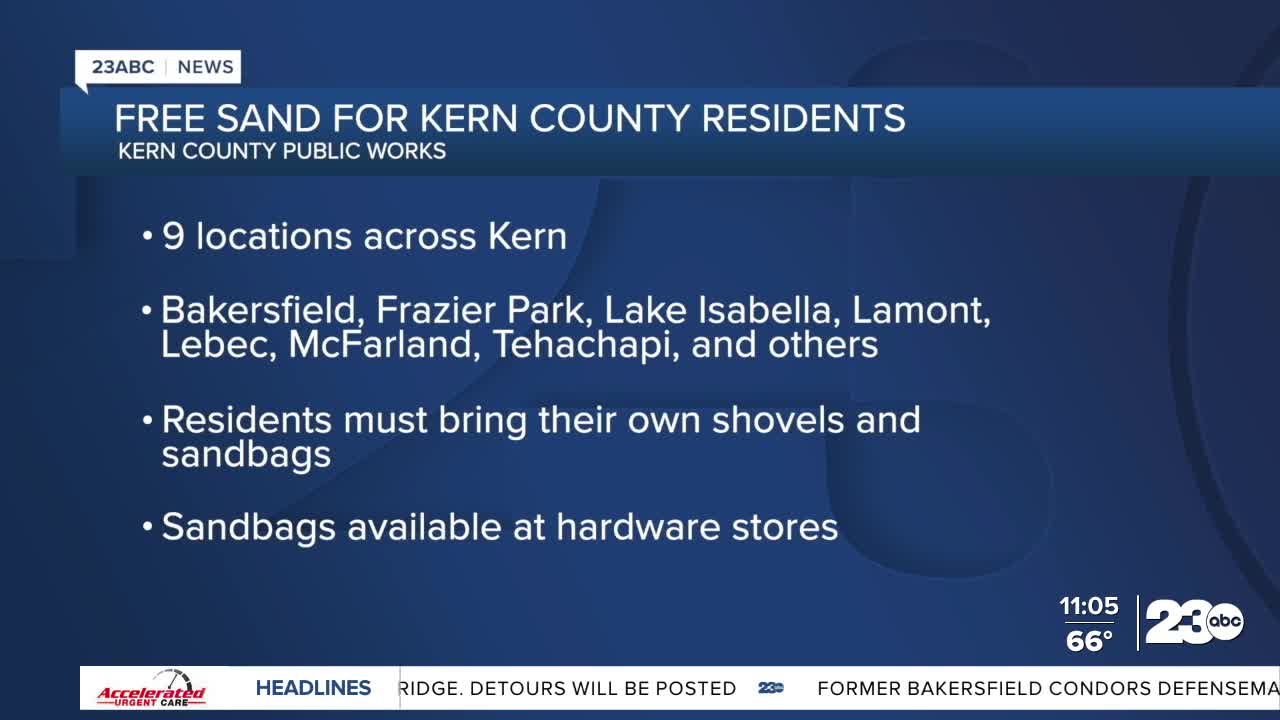 Kern County residents can pick up free sand to protect their properties from potential flooding as the area braces for heavy rainfall.
