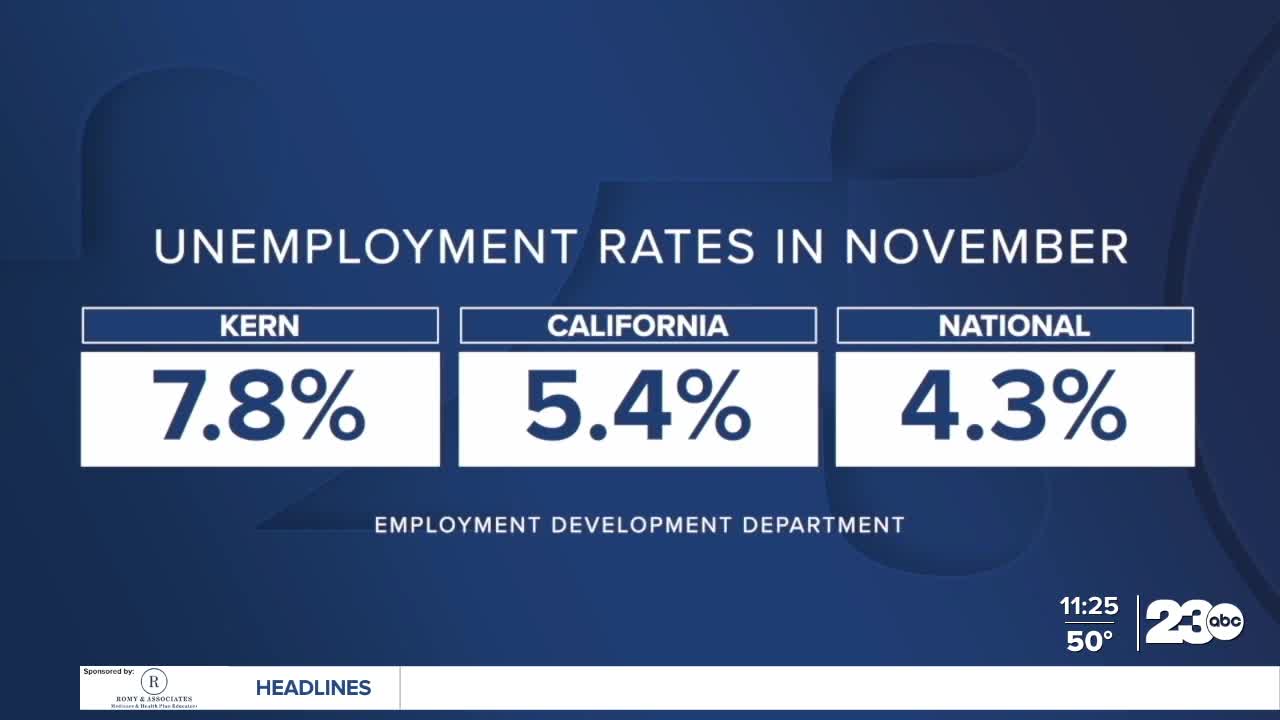 Despite the improvement, the county continues to lag behind state and national averages. California's unemployment rate was 5.4% in November, while the national rate was even lower at 4.3%.