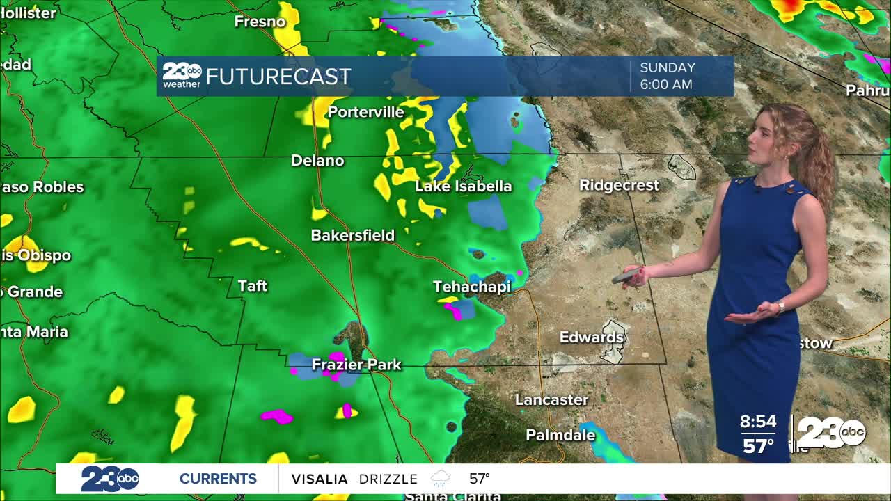 Don't pack up those rain boots or umbrellas just yet, though. Another storm is set to drop down from the north on Monday, bringing additional waves of rainfall to Kern through Monday and early Tuesday. We're keeping an eye on that system's track, and early models show it trending cooler, so snow levels could be between 6,000 and as low as 5,000 feet.