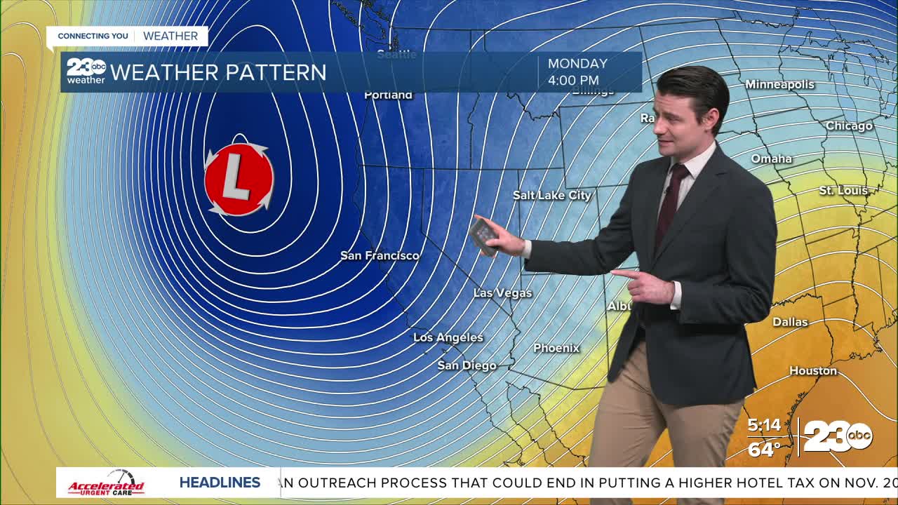 Rain chances increase starting on Sunday, but latest model data has the bulk of the rain arriving in Kern County early on Monday, and lasting into Tuesday.
