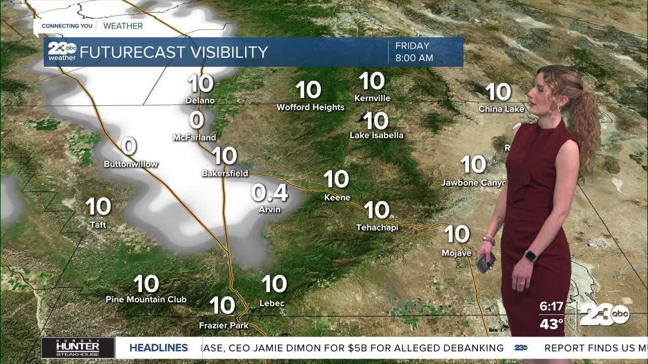 There's a solid chance for the sunshine to peek out in Bakersfield by Friday afternoon. If the fog lifts like it's expected to, temperatures will be in the low-60s with partly cloudy skies.