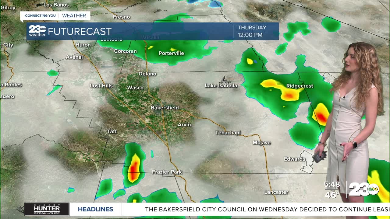 The aforementioned weak storm system passes through Kern today. Scattered, light rain showers are possible through the late morning and early afternoon.