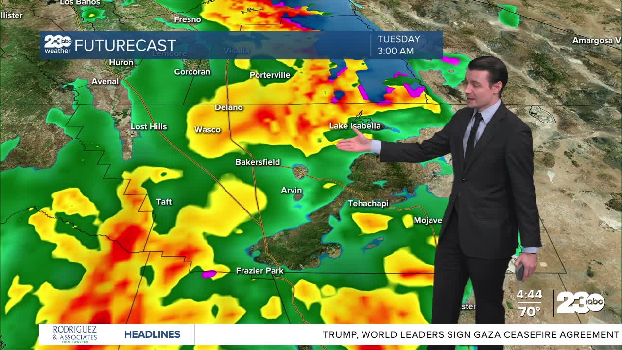 Rain is already falling in parts of California, including a few light showers in Kern, and widespread rain will arrive in Kern County Monday night.