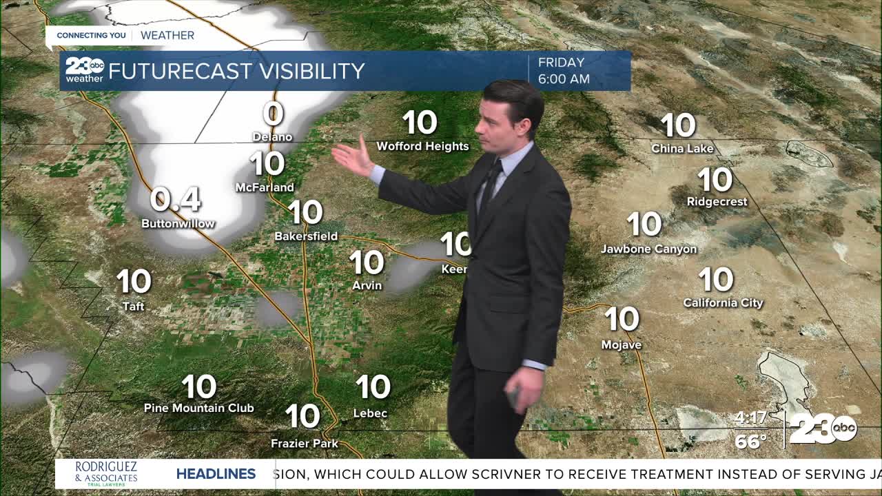 A Dense Fog Advisory will be in effect Thursday night through Friday morning for large part of the Valley, including parts of Kern County.