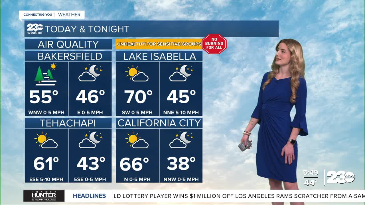 Away from the valley fog and haze, 60s and low-70s remain in the KRV, desert, and mountains.