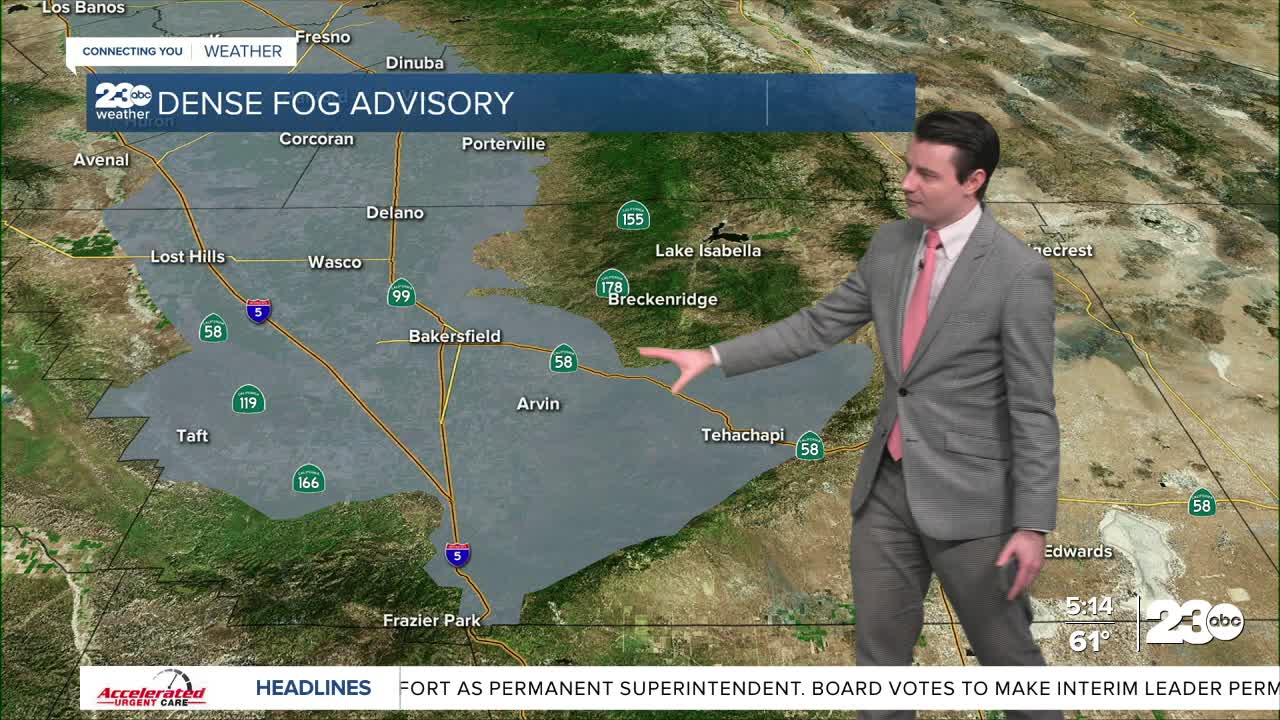 A Dense Fog Advisory is in effect Wednesday night for all of our Valley areas, and also extends up toward Tehachapi and Tejon Pass.