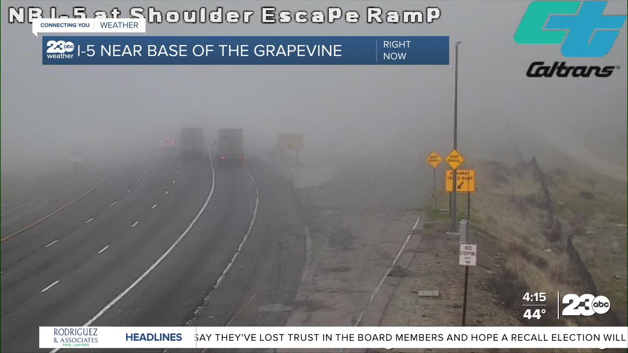 Dense fog is expected where the clouds meet the mountains, too, including parts of the Grapevine and Highway 58.