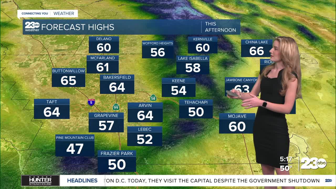 All of our communities will be well below seasonal average on Wednesday. Bakersfield and the surrounding valley communities will be in the mid-60s, and then 50s and 60s are expected for the rest of Kern.