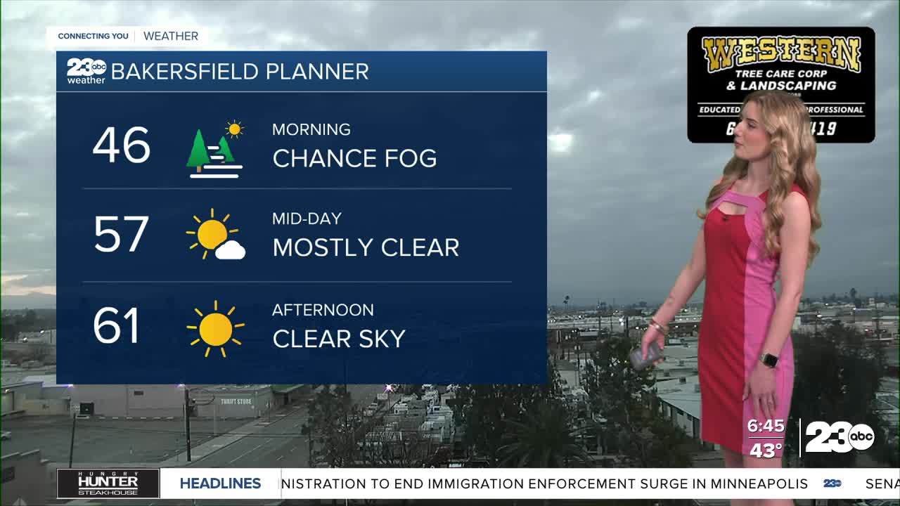 Bakersfield is expected to clear into the afternoon, and Friday and Saturday are set to be calm and comfortable with highs in the 60s.