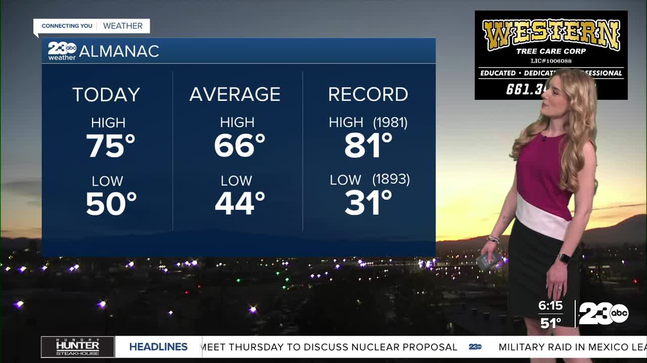 Again, that rain will stay away from Kern County. Our weather for Tuesday stays really nice, giving us an early taste of spring. Bakersfield will warm to the mid-70s on Tuesday afternoon, which is nearly 10 degrees above average for this time of year.
