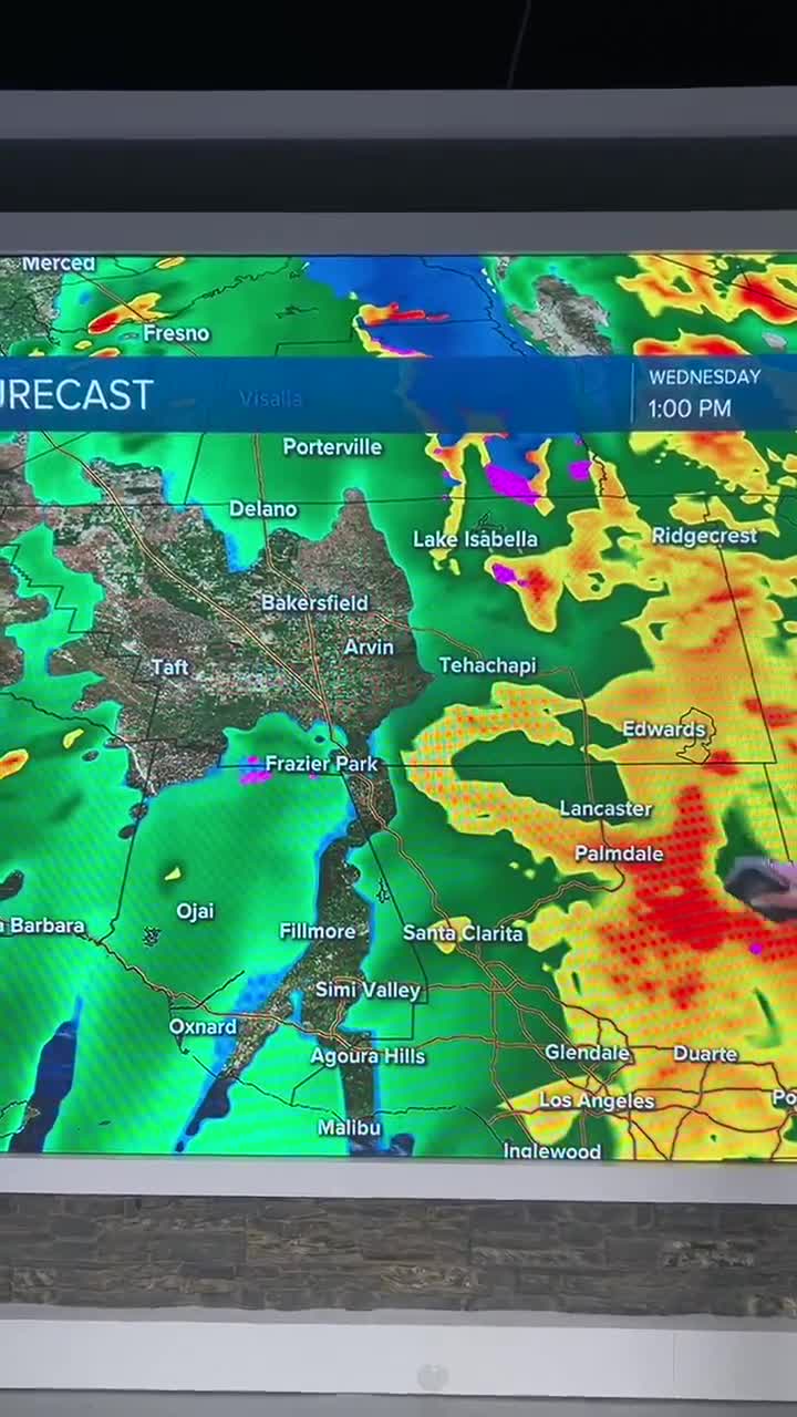 Friday night, we are monitoring the chance for mixing rain and snow as low as 4,500'. The Tehachapi area, Frazier Park, and some of our high elevation mountain communities could see some mixing of snow and rain, plus a chance for it to be cool enough for icy roadways.