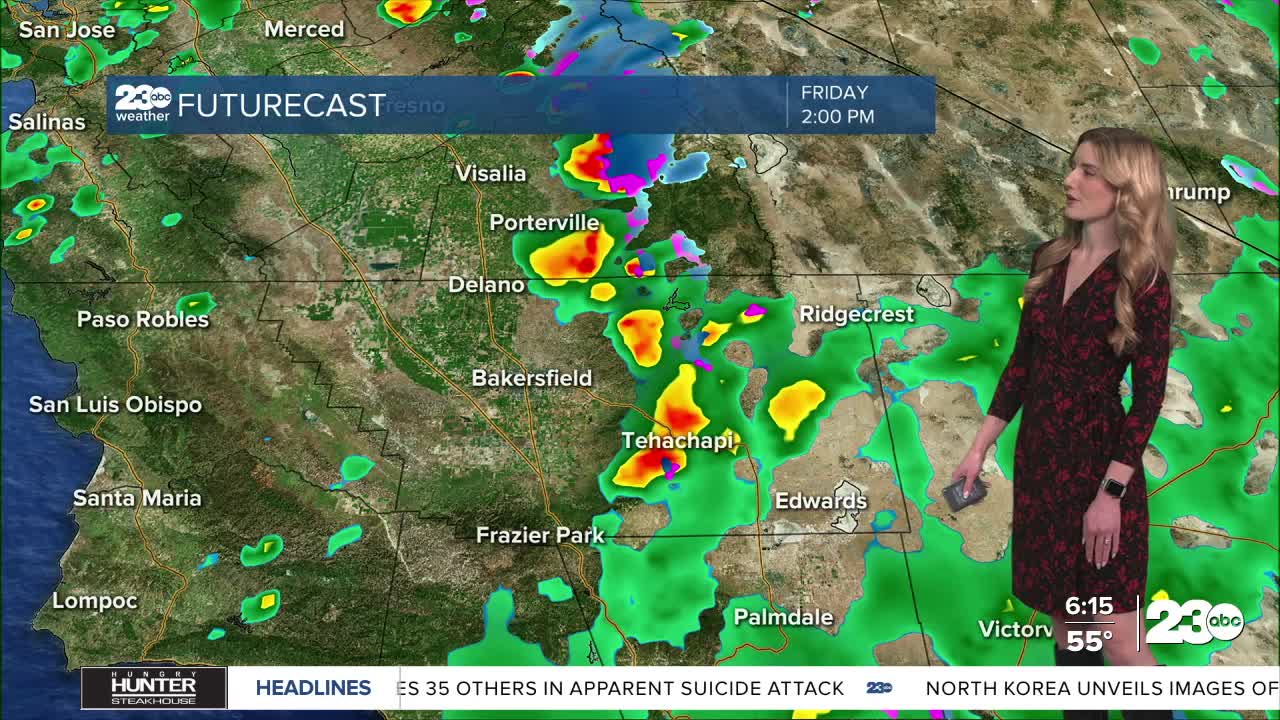 On the tail end of the storm system, by Friday night, temperatures will be much cooler. We're seeing snow levels drop to as low as 4,500', meaning there's a chance for snowflakes in our mountain towns. Accumulating snow is not expected on the mountain passes, though the cold temperatures could mean an icy start to Saturday.