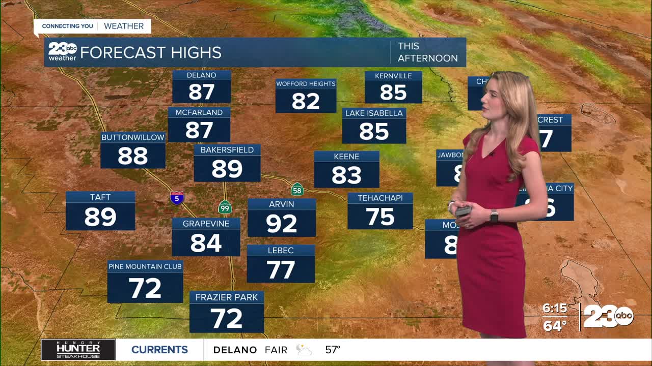 Temperatures stay above average once again today and tomorrow, but changes are coming. Bakersfield will be near 90 Tuesday and Wednesday, and 70s and 80s are expected for the rest of Kern County. Dress in layers this week as the morning temperatures stay on the cooler side.