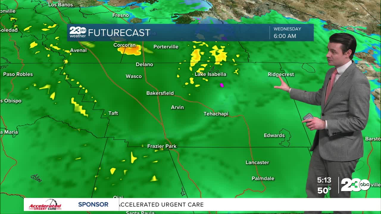 A few light showers are possible Tuesday, but light rain becomes widespread on Wednesday.