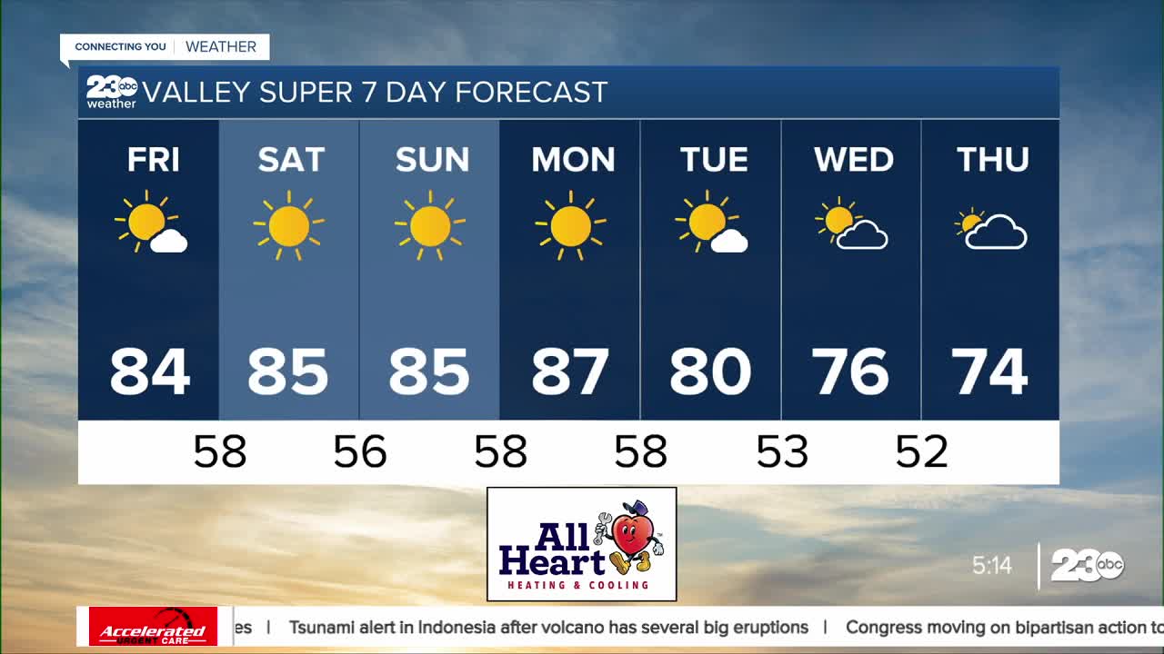 Since hitting only 59° on Sunday, Bakersfield has hit 66°, 76°, 81°, and now 85°.