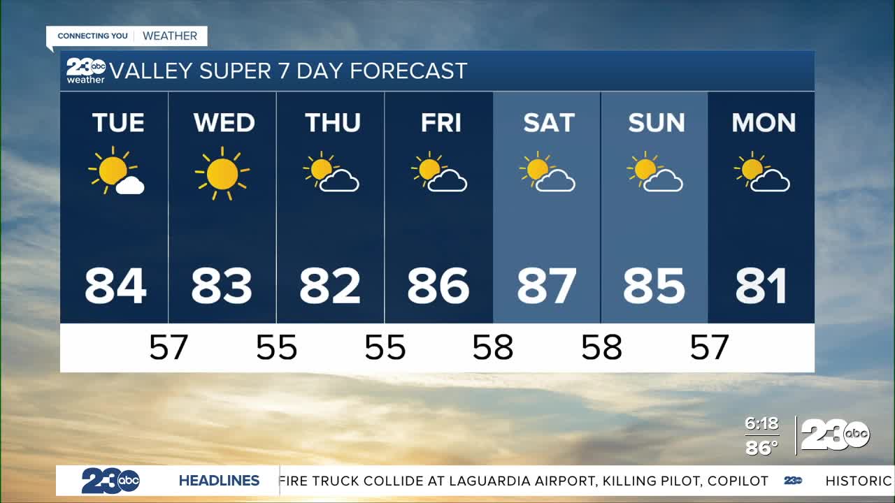 Highs in Bakersfield will be in the 80s, which is well above average the average high of 71° this time of year.