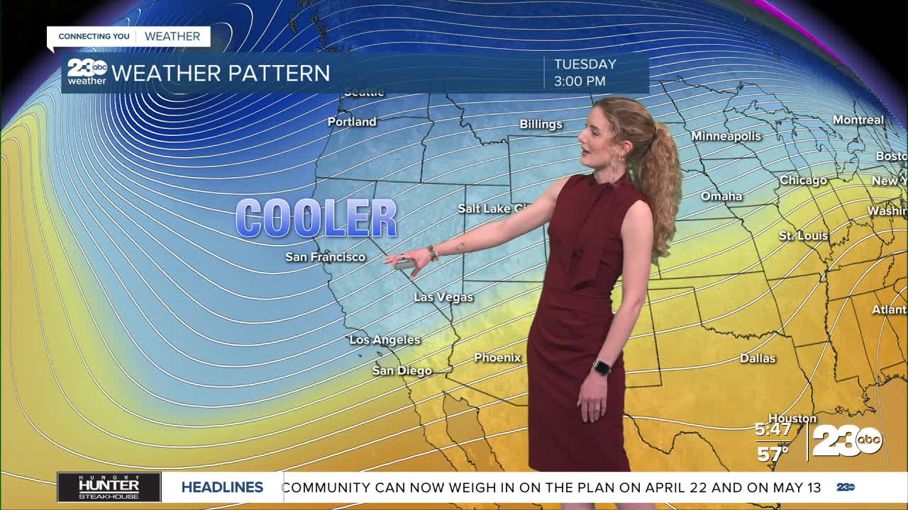 A storm system is set to drop into California by Tuesday and Wednesday. At the very least, it's set to cool our temperatures down. As the cool air arrives, there's early signs of some rain entering our forecast, too.