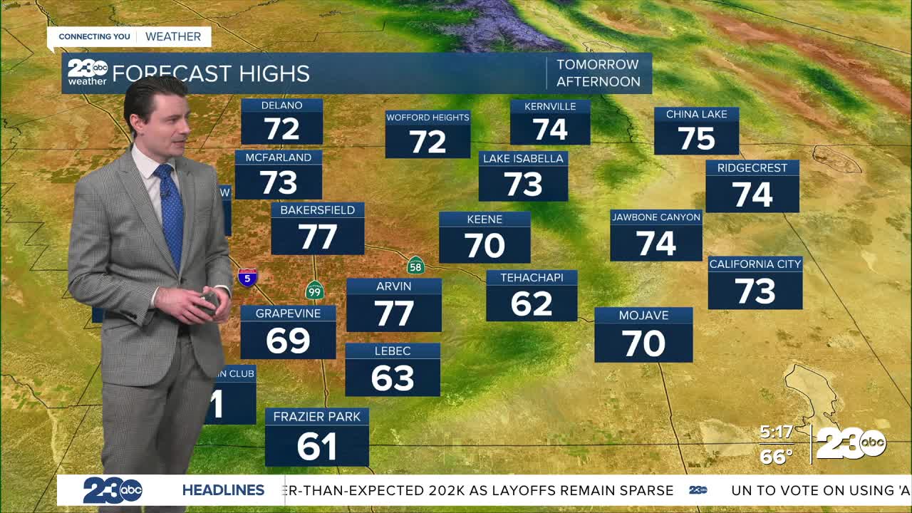 By Friday afternoon highs will be in the 60s and 70s across Kern.