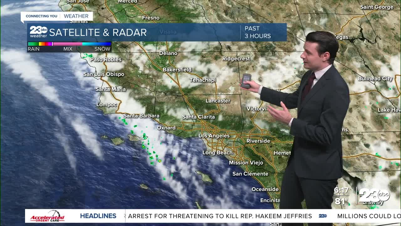 Most of the rain will stay to our north, but there's 10% to 20% chance here in Kern.